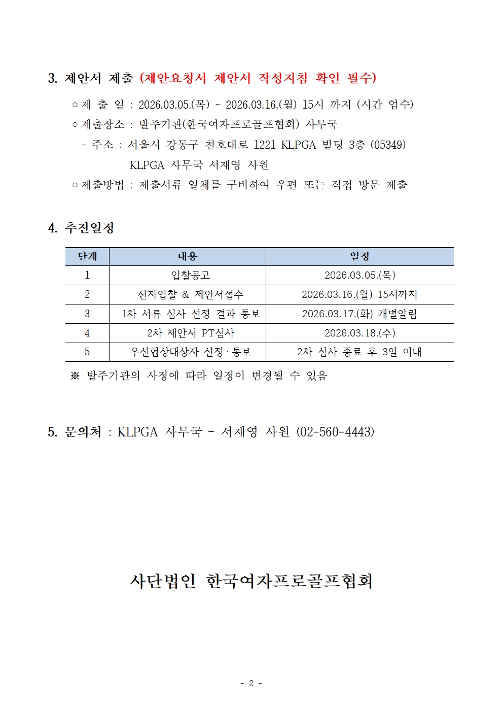 KLPGA 정규투어 운영 업무 리소싱(Resourcing) 관련 위탁업체 선정 입찰 공고