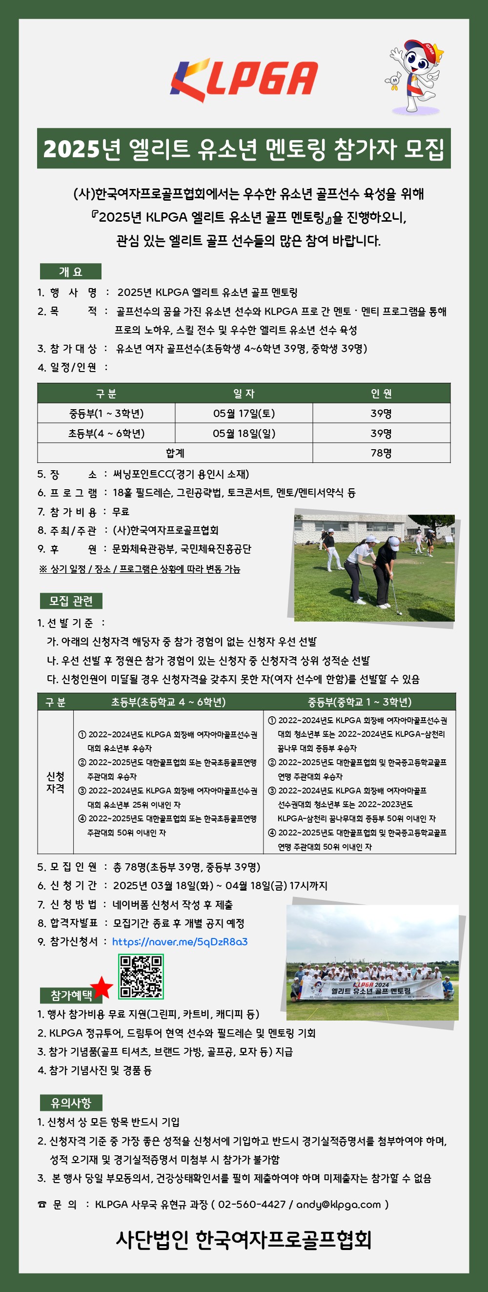 2025년도 KLPGA 엘리트 유소년 골프 멘토링 참가자 모집